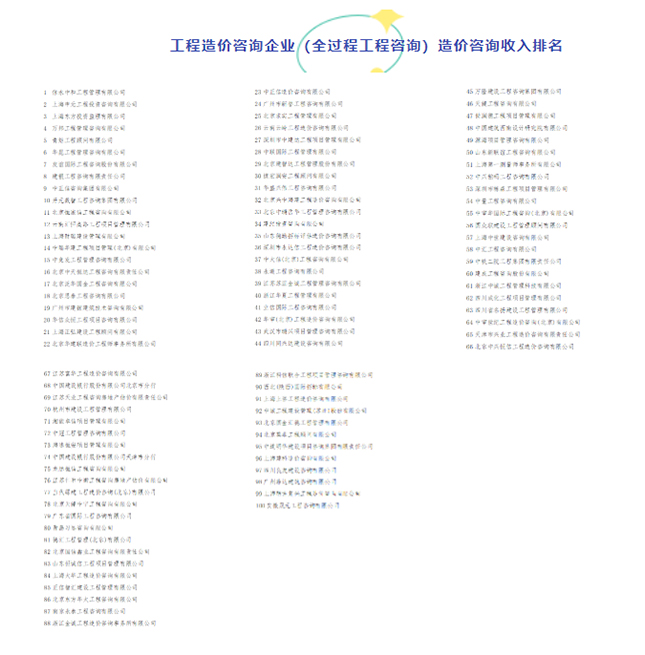 河南華威公司位列2020工程造價(jià)咨詢企業(yè)造價(jià)咨詢收入17!連續(xù)兩年入圍全國(guó)百?gòu)?qiáng)排名20。
